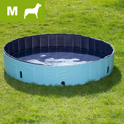 Giv din hund sin helt egen swimmingpool! Hundebassinet af stærk plast har forstærkede sidevægge og står stabilt, også uden luftkamre. Du behøver hverken luftpumpe eller at puste selv!
