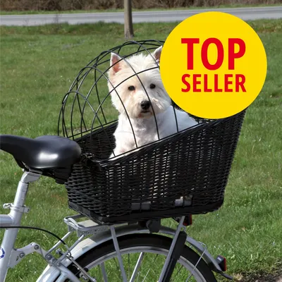 Trixie Cykelkurv med gitter til hunde, af holdbart pileflet og galvaniseret gitter, til montering på bagagebæreren, bæreevne op til 8 kg, inklusive blød velour-pude